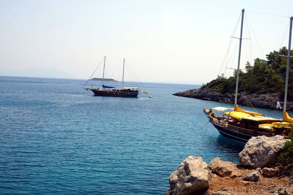 Yoluna gelince; dönemeçler yaparak ilerleyen toprak yol, giderek alçalıyor ve taşlı yol halinde önümüze çıkıyor. Normal araçlarla gidilebilecek bir yol olmadığını anlıyoruz. Epey macera dolu, zorlu bir yolun ardından koya varıyoruz. Tertemiz ve pırıl pırıl bir deniz bizi karşılıyor. Bir yanda tekneler bir yanda piknik yapan, kamp kuran insanları görüyoruz. Koyu, tepeden görüp vardığımızda o sakin, huzurlu görüntüsünün yaşattığı heyecan burayı unutulmaz kılıyor.