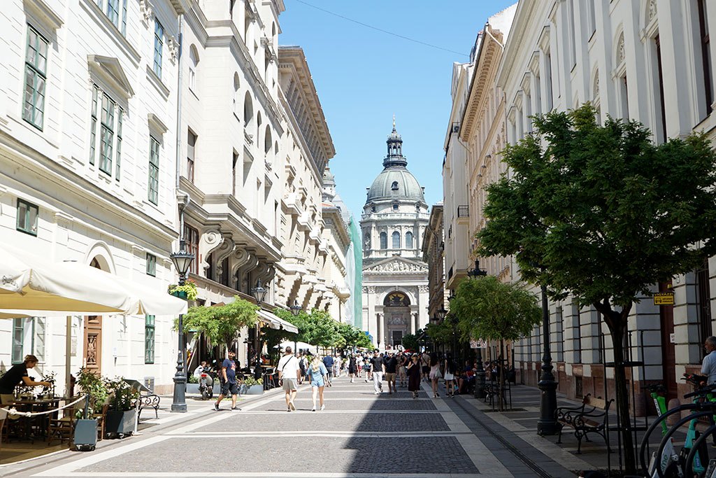 St. Stephen Meydanı, genişliği ve sunduğu sayısız kafeyle insanı dinlenmeye davet ediyor; burada ister keyifli bir kahve molası verebilir, ister çevrenin güzelliğine dalıp gidebilirsiniz. Burası, insanın uzun zaman geçirmekten zevk aldığı o nadir noktalardan biri olarak akılda kalıyor.