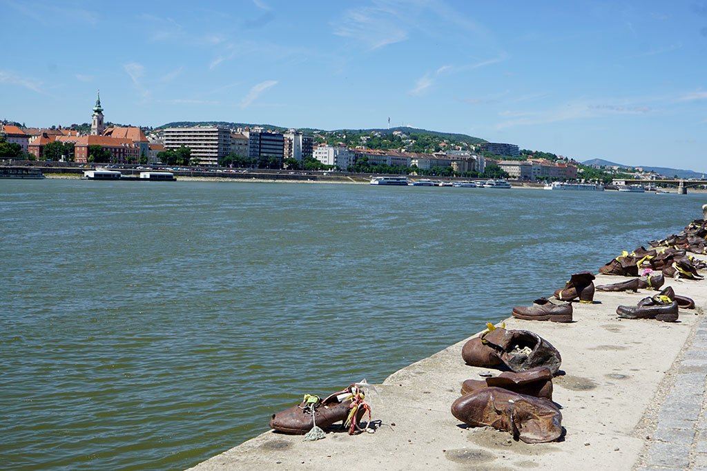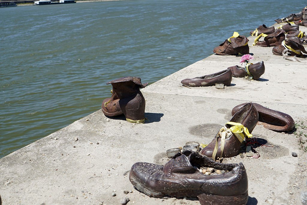 Yaklaşık 80.000 Yahudi, Macaristan’dan Avusturya sınırına sürülmüş; bununla birlikte, Szalasi hükümeti yaklaşık 20.000 Yahudi’yi Tuna Nehri kıyısında vahşice katletmiştir. Savaşın zorlu yokluk yıllarında ayakkabılar büyük bir değere sahip olduğundan, kurbanlardan ayakkabılarını çıkarmaları ve nehre atlamaları istenmiş, ardından nehirde kurşuna dizilmişlerdir. Bugün, Tuna kıyısında sessizce duran bu demir ayakkabılar, o acı dolu katliamın anısını yaşatan bir açık müze olarak ziyaretçilere sunuluyor.