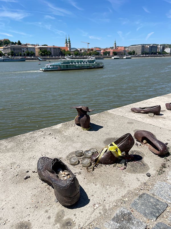 Nehir kıyısı boyunca uzanan ayakkabılar, yaşanan insanlık dışı uygulamaların ve katliamın hüzünlü bir hatırası olarak kalbimize dokunuyor. Bu noktada, boğazımızın düğümlenmesi kaçınılmaz bir duygu. Bu eser, II. Dünya Savaşı sırasında Naziler tarafından hayatlarına son verilen Yahudileri anmak amacıyla yapılmıştır.