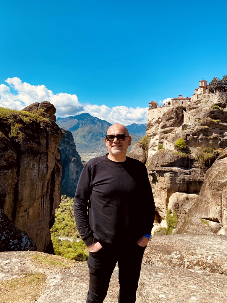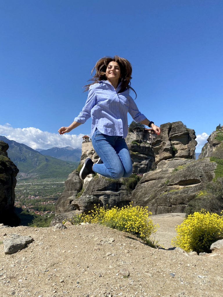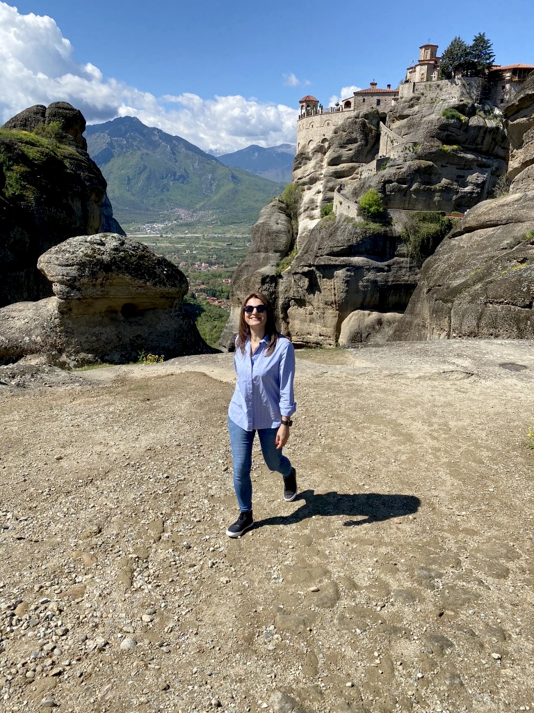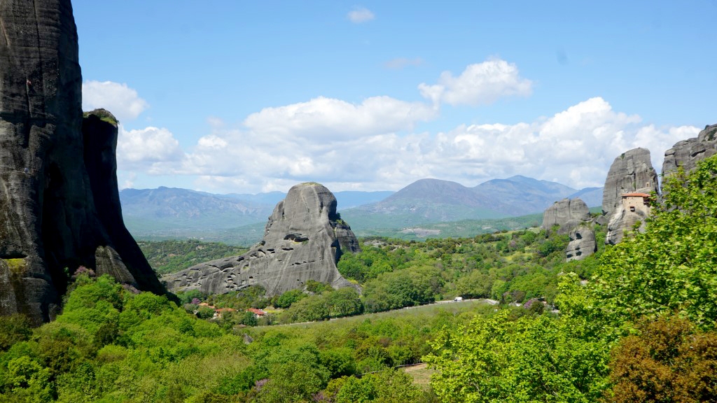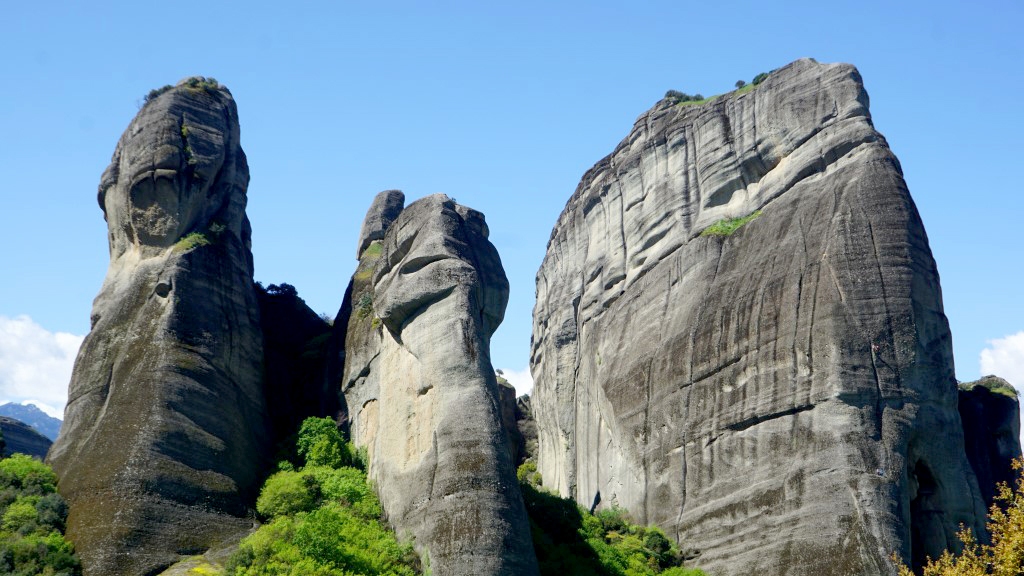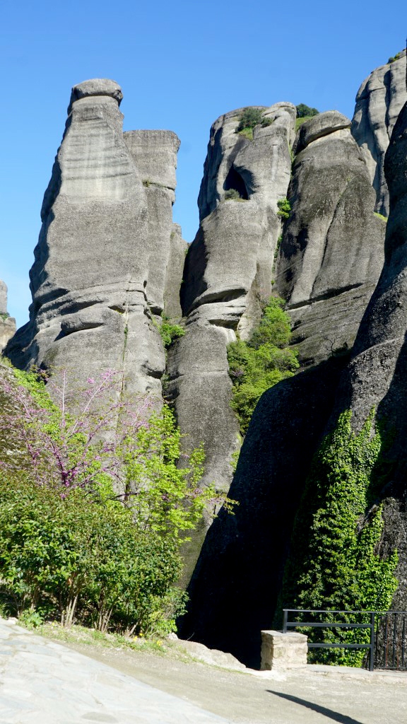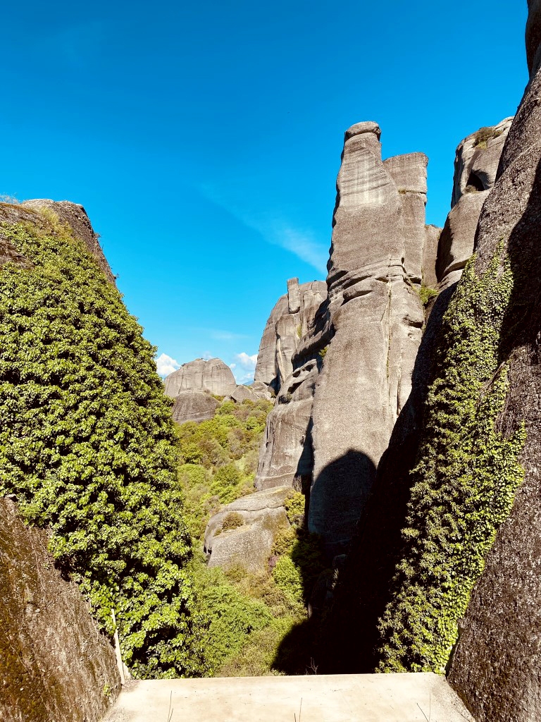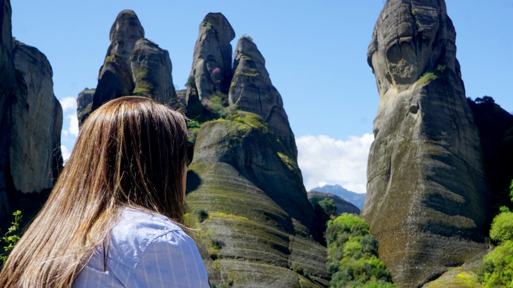Meteora’ya varınca yerden gökyüzünü delercesine fışkırmış yükseklikler… Devasa kaya bloklar üzerinde kurulmuş manastırlar göze çarpıyor. Bu büyülü yeri gezmeye başlayınca insanın içinde fotoğraf çekme isteği uyanıyor. Gerçi benim için bu istek iki katına çıkmış olabilir. Sanki eski dönem film sahnesindeymiş gibi hissettiriyor.