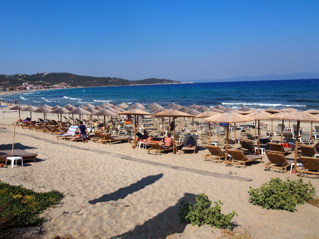 Yarımadaları incelerken, ilk olarak Kassandra‘yı gördük. Araştırdık ki, burası beach barlar ve tesislerle dolup taşan, Halkidiki’nin en popüler yeriymiş. Sithonia’ya göre daha küçük ama daha yapılaşmış, yani eğlencenin ve kalabalığın adresi belliydi.