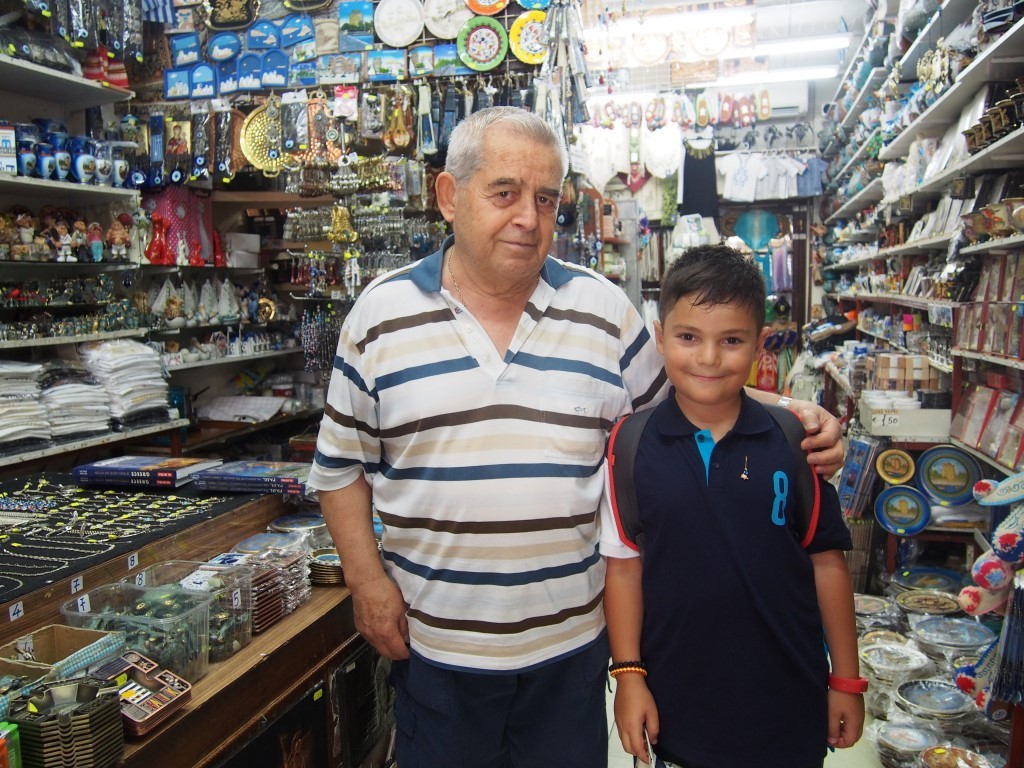 Selanik Kalesi’nin hemen karşısındaki şirin hediyelik eşya dükkanına girdiğimizde, bizi inanılmaz sıcak karşılayan dükkan sahibiyle tanıştık. Öyle pozitif bir insandı ki, onunla bir hatıra fotoğrafı çektirmeden edemedik!