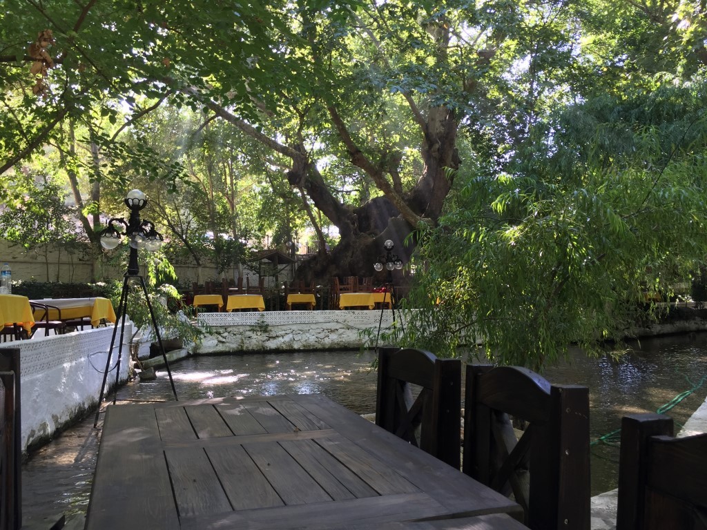 Bir yandan bu hayranlık uyandıran anıt ağacın gölgesinde serinlerken bir yandan yeşilliklerin ve suyun sesi ile rahatladığınızı hissediyorsunuz.